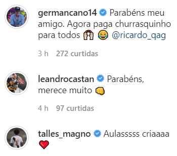 Companheiros parabenizam Ricardo Graça por renovação e Cano brinca: 'Agora paga churrasquinho para todos'