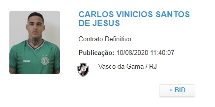 Assim como Guilherme Parede, Carlinhos é inscrito no BID da CBF e está apto a enfrentar o Sport nesta 5ª-feira