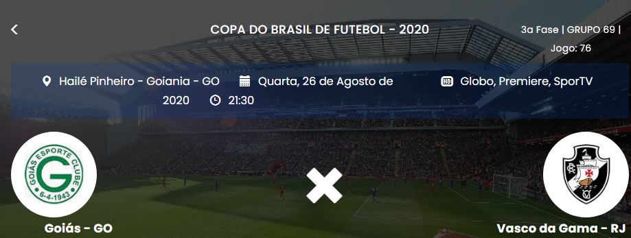 Goiás x Vasco, pela Copa do Brasil, será no dia 26/08 às 21h30 em Goiânia com TV Globo e Sportv