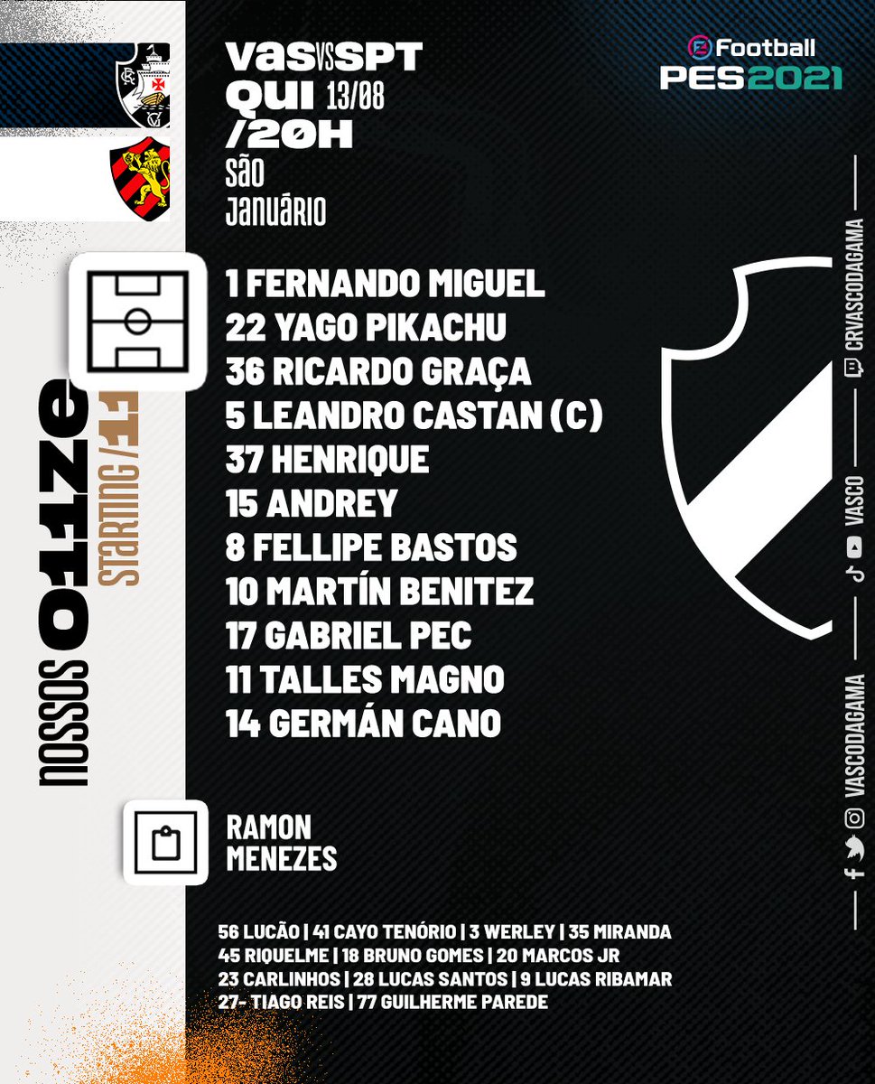 Confira a escalação do Vasco para a estreia do Brasileiro contra o Sport