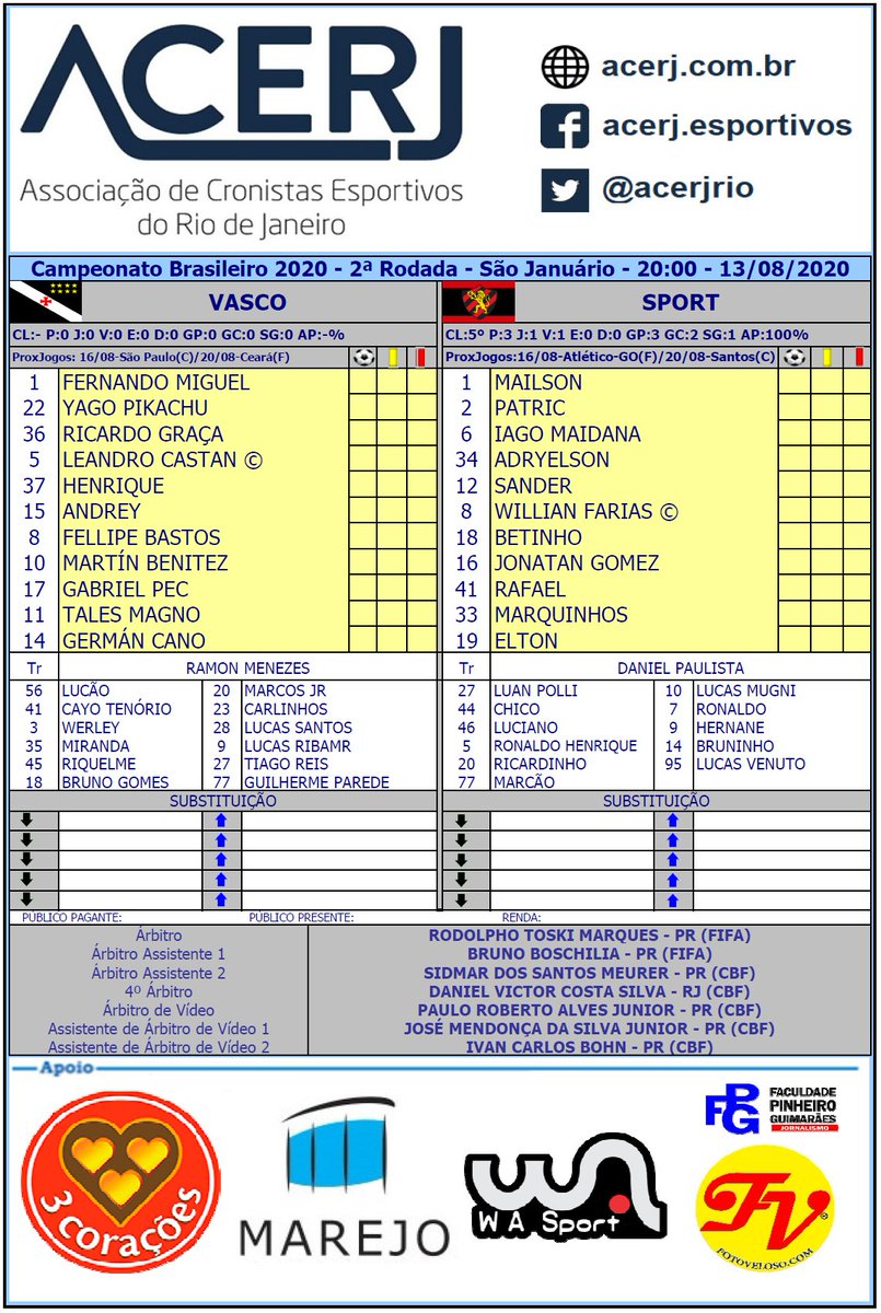 Escalações de Vasco e Sport pela 2ª Rodada do Campeonato Brasileiro 2020 em São Januário #Brasileirao2020 #acerjinforma #VASxSPO #VASxSPT
