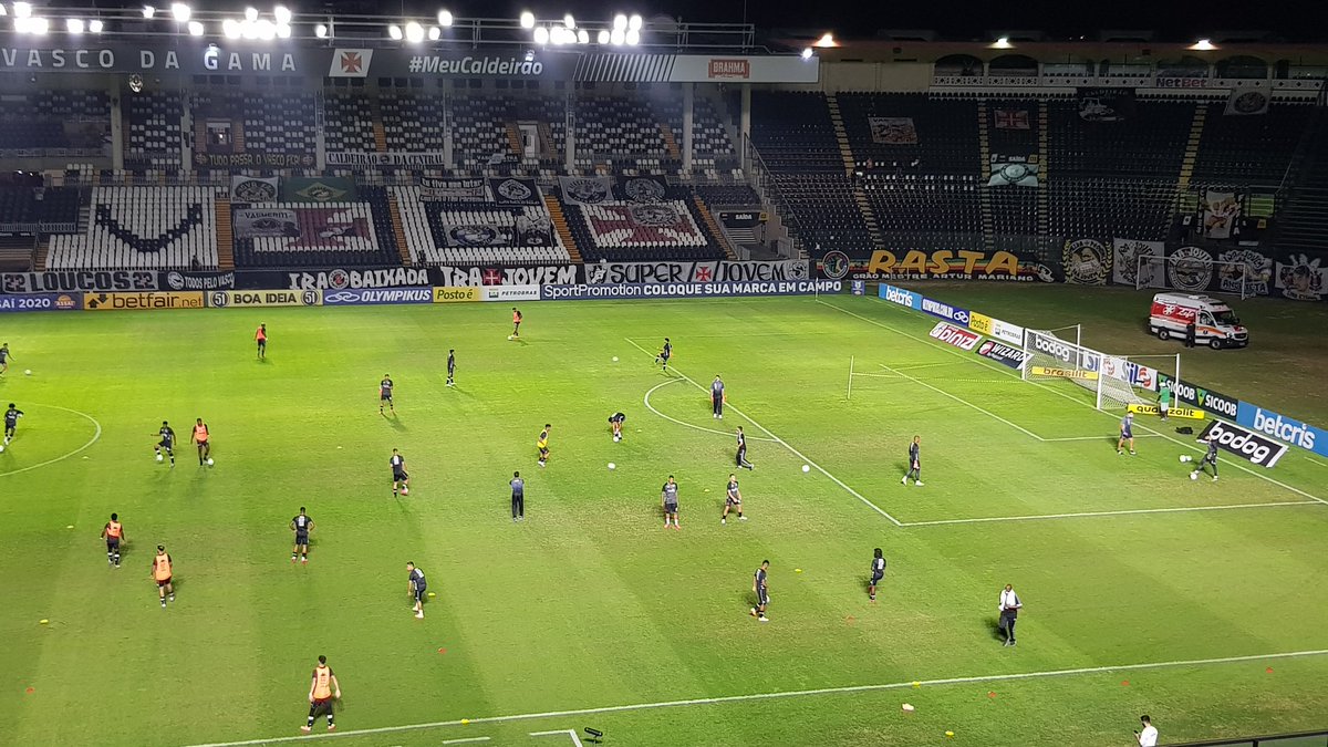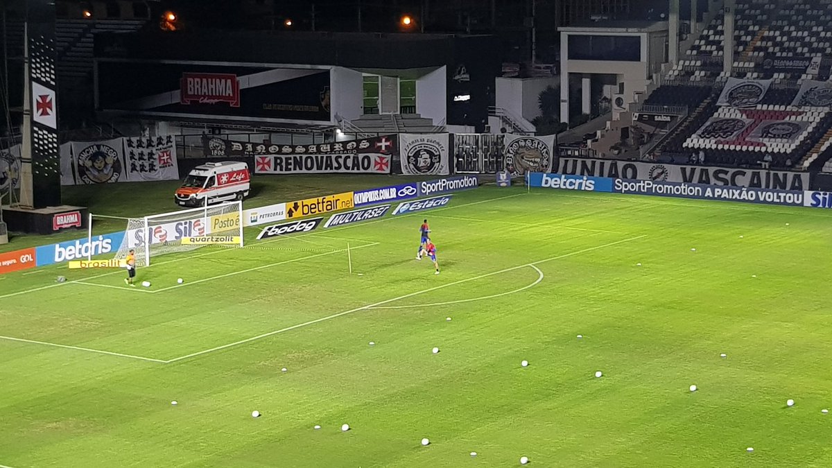 Jogadores do Vasco se aquecem no gramado de São Januário; veja fotos