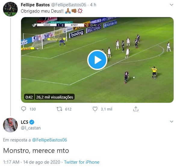 Fonte: Twitter do jogador Fellipe Bastos, Twitter do jogador Leandro Castan