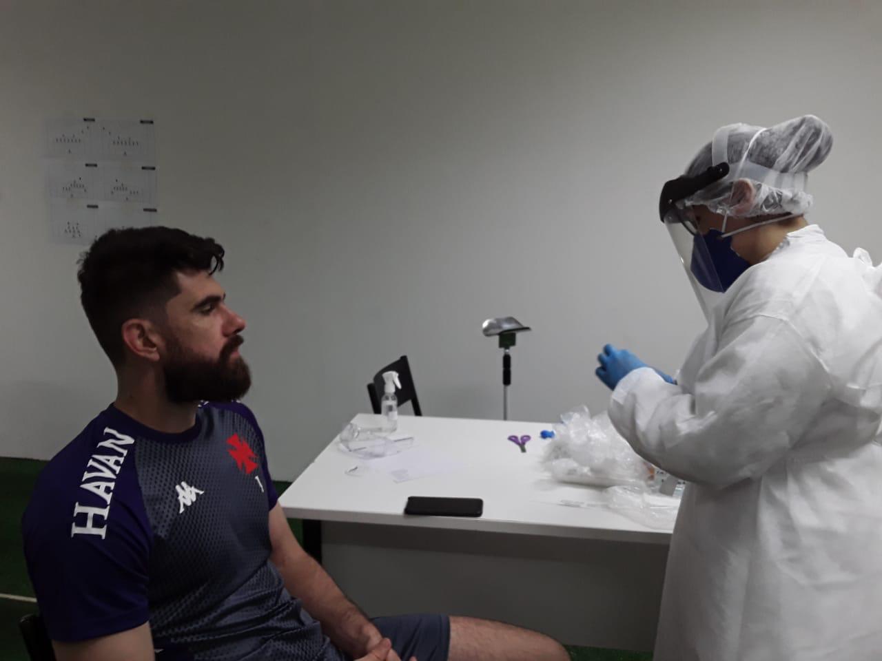 Uma equipe do laboratório Sérgio Franco esteve em São Januário para testar o elenco. O resultado do exame sai em até 48 horas.