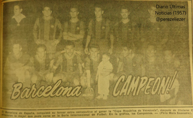 Não era um fraco Barcelona como muitos costumam pensar. Uma semana antes, esse mesmo time havia conquistado de forma invicta a Taça da Espanha. E algumas semanas depois conquistaria o título invicto da Pequena Taça do Mundo contra o Botafogo de Didi e Garrincha.
