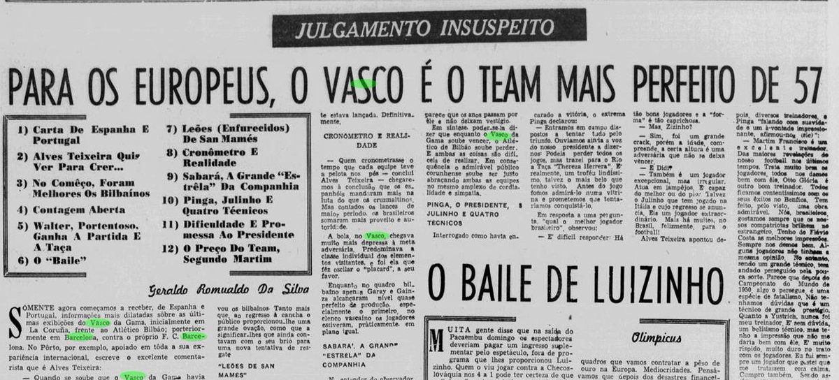 Os jornais da época atestam que o Vasco foi tido como uma verdadeira potência mundial. Muitos europeus, inclusive, chegaram à conclusão de que aquele era o melhor time do mundo.