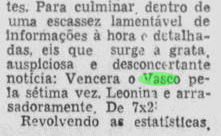 Vasco: Carlos Alberto; Dario e Viana; Laerte, Orlando e Ortunho; Sabará, Livinho, Vavá (Wilson M.), Válter e Pinga. T: Martim Francisco.