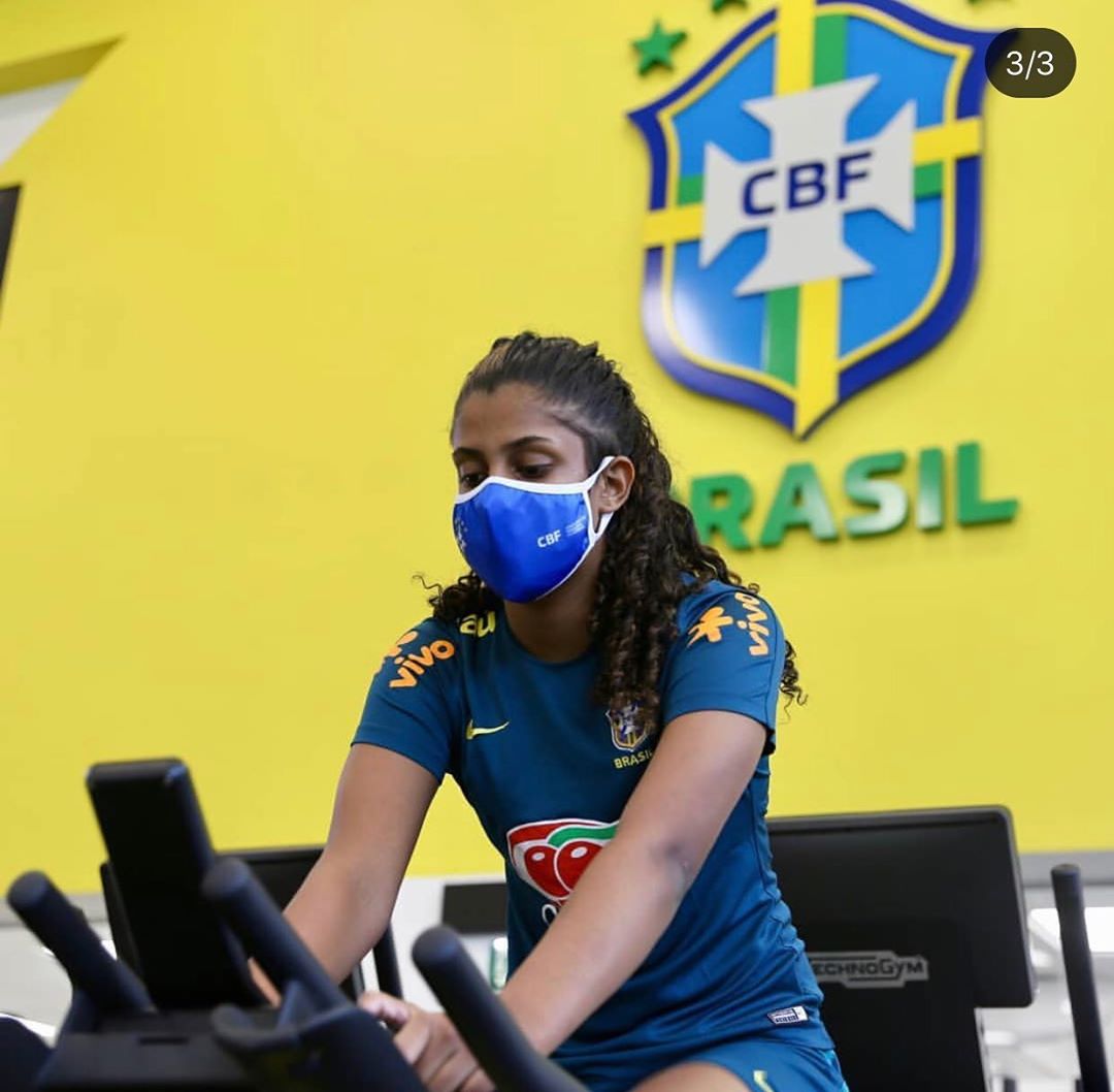 Feminino: Kaylane Mello posta foto treinando de máscara na Seleção Sub-17