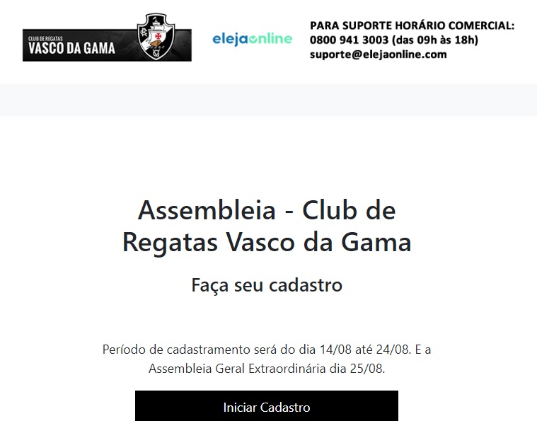 Site que operacionalizará AGE do Vasco inicia cadastramento dos sócios votantes