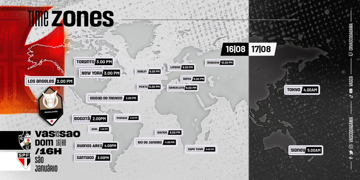 Vasco divulga horário do jogo contra o São Paulo para os torcedores espalhados pelo mundo