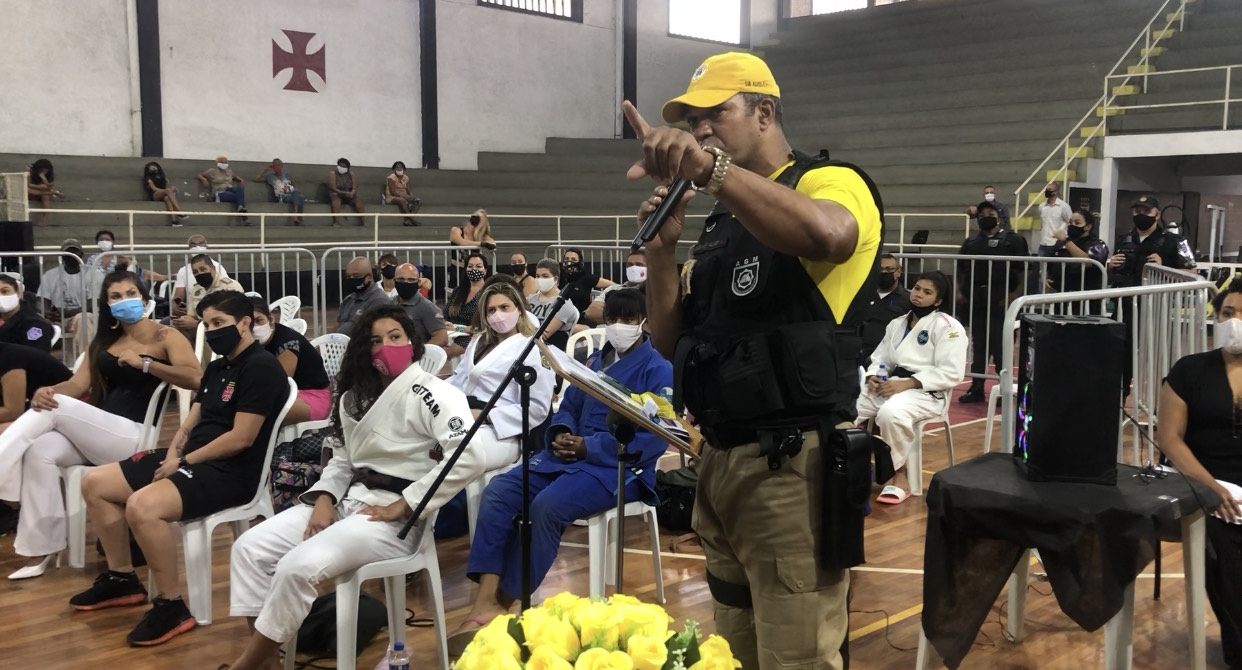 - A causa de todas nós estarmos aqui hoje são essas mulheres incríveis do esporte. Eu me emociono, pois quando olho para elas eu vejo os desafios que as mulheres precisam enfrentar para se firmarem em todas as áreas da sociedade. Imagino que a luta de todas reforçam a ideia que o lugar de mulher é onde ela quiser. Só que a gente sabe que para estar no lugar onde queremos não é fácil. Sabemos que não é simples, companheiras. Eu como policial militar digo o mesmo. Nós sempre precisamos reconhecer quem são as nossas pioneiras que ousaram botar um kimono afirmando que queriam praticar esse esporte. Essas guerreiras preparam o caminho para todas nós. O protagonismo é das mulheres e deve ser nosso, mas essa luta é de todos. Os homens devem estar ao nosso lado nesse processo. Nós só vamos conseguir dessa forma. Quando a gente tem um espaço como esse nós conseguimos falar de assédio, que é uma violência invisibilizada. Muitas das vezes nós passamos por essas situações e não conervsamoss sobre elas. É difícil se abrir, pois geralmente é complicado alguém acreditar o que nós passamos. Só quem sofreu assédio sabe a humilhação e a dor que é. Muitas das vezes a dor da violência contra a mulher pode até parecer no corpo, mas não é só isso- explica Cláudia emocionada.