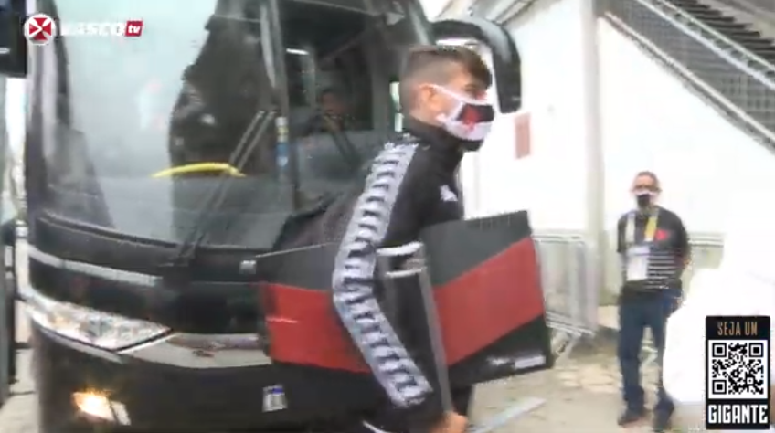 Elenco do Vasco já está em São Januário; Ricardo Graça desceu do ônibus com um monitor