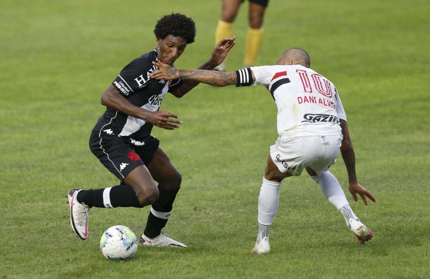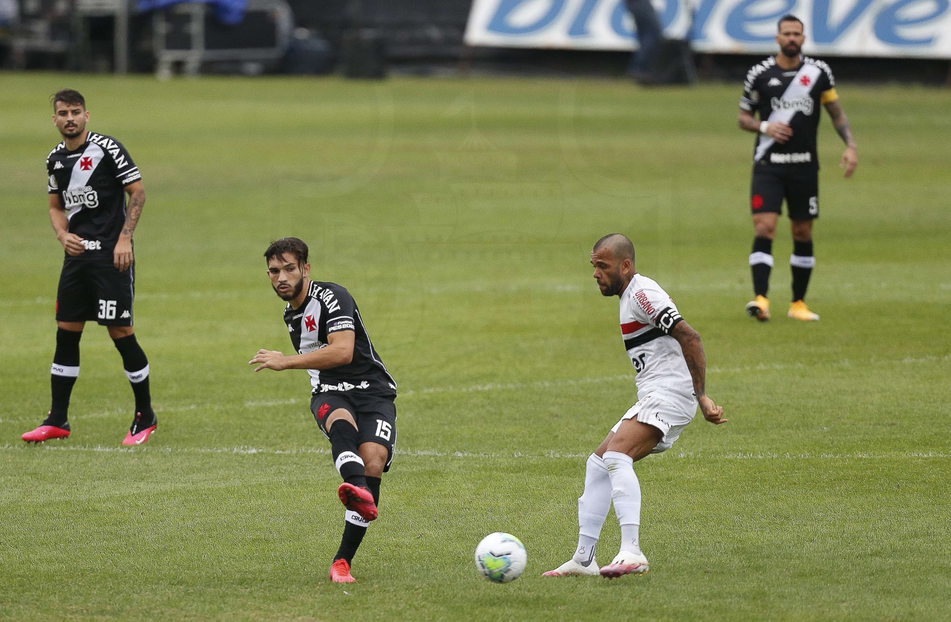 O São Paulo adiantou a linha defensiva nos minutos iniciais e teve um bom começo em São Januário. No primeiro lance, Liziero encontrou Paulinho pela esquerda, que avançou e tocou na medida para Daniel Alves. O camisa 10 pegou muito mal na bola e desperdiçou grande chance de marcar.