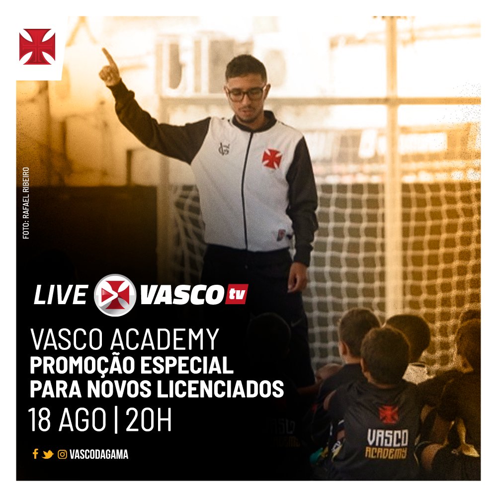 Hoje tem Live na Vasco TV e vamos bater um papo com @carlosbrazil8 (Gerente da #BaseForte) e Gabriel Ferreira (Gerente da #VascoAcademy) sobre uma promoção especial para novos licenciados.