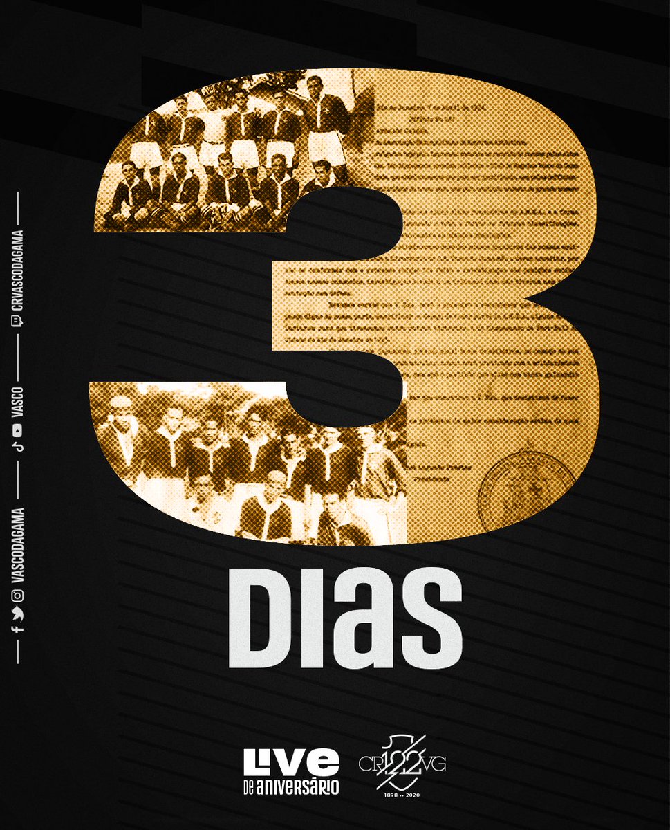 Faltam 3️⃣ dias para #Vasco122 com uma #SuperLiveVascoTV.