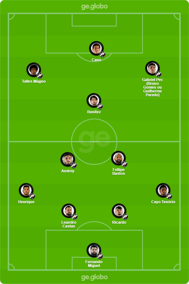 Quem está fora: Pikachu, com lesão na coxa direita, Vinícius, com lesão na panturrilha esquerda, e Bruno César, que testou positivo para a Covid-19 no último dia 10.