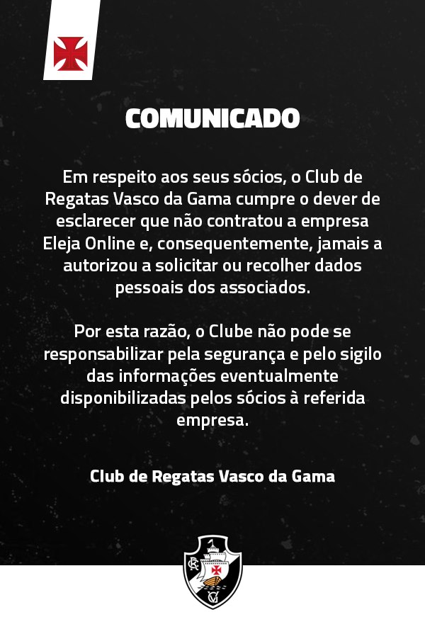 Vasco envia comunicado aos sócios dizendo que não contratou a Eleja Online