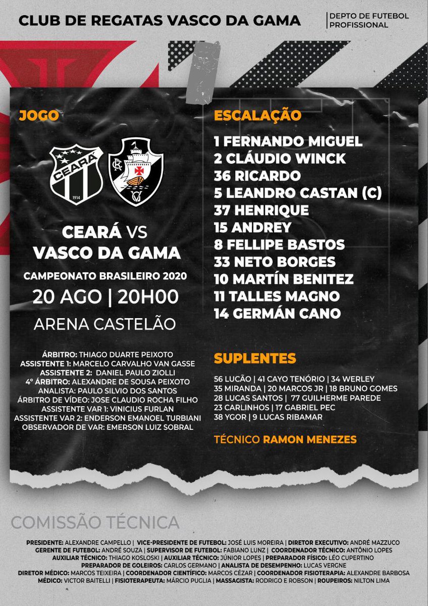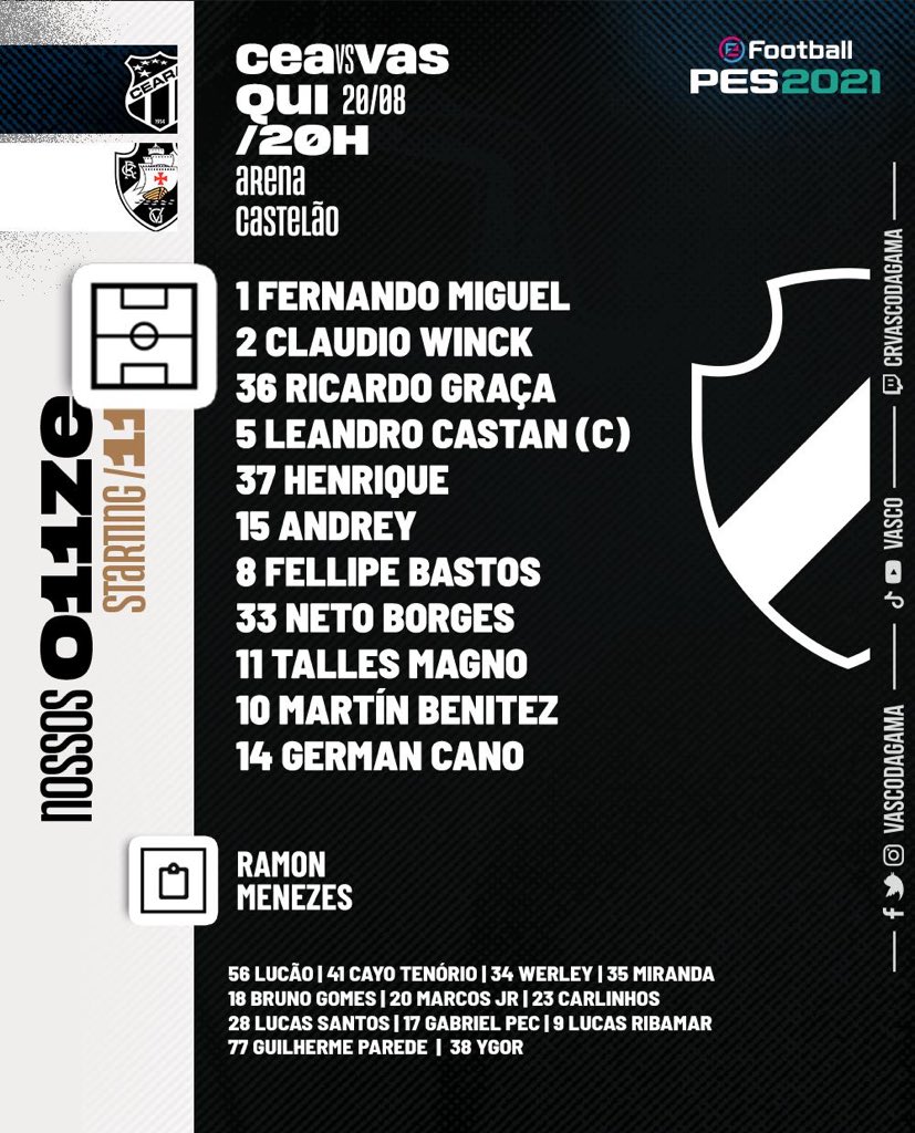 Vasco escalado cheio de novidades para enfrentar o Ceará. #trcastelao