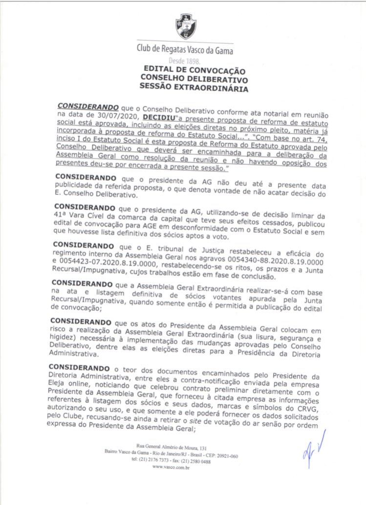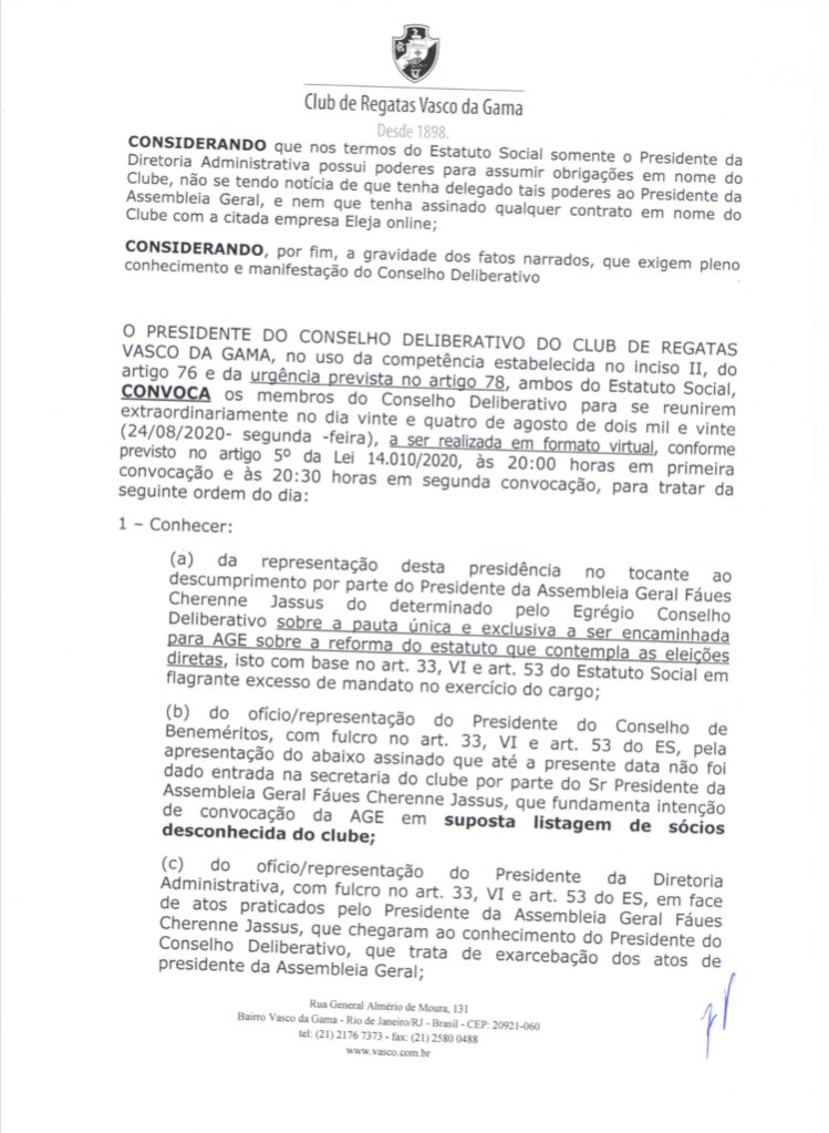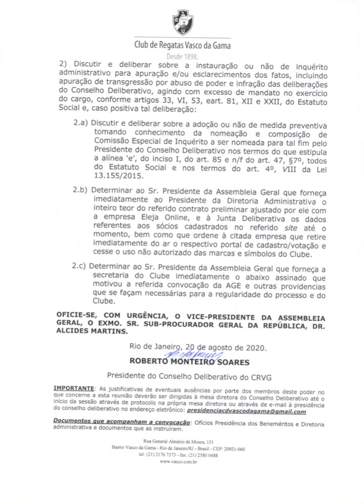Roberto Monteiro convoca Conselho Deliberativo para se reunir virtualmente, com urgência, diante da condução de Mussa no tocante a AGE.