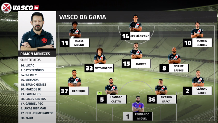 Olha a disposição tática do Vasco exibida pela TV do clube no pré-jogo no Youtube. #trcastelao