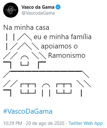 Vasco posta no Twitter: 'Na minha casa eu e minha família apoiamos o Ramonismo'