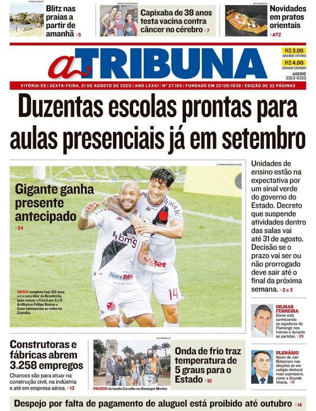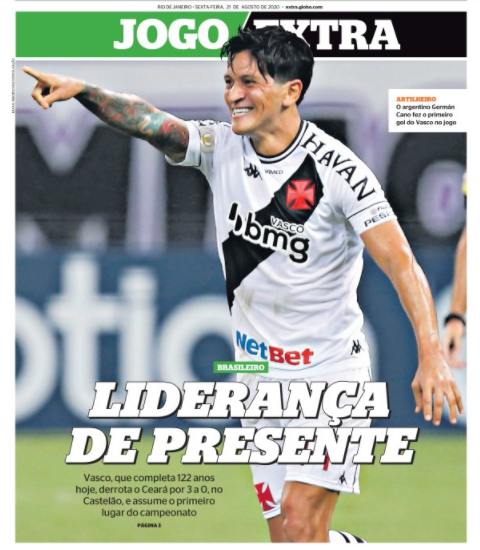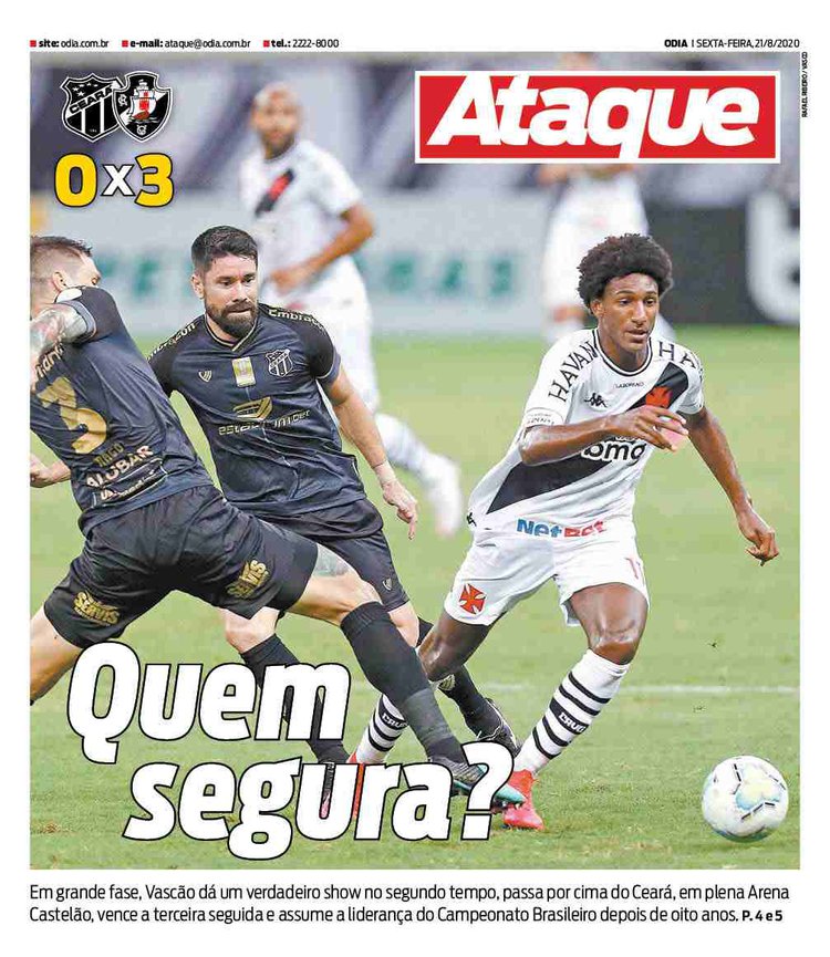 Veja como a imprensa destacou a vitória a vitória do Vasco sobre o Ceará e a liderança no Brasileiro