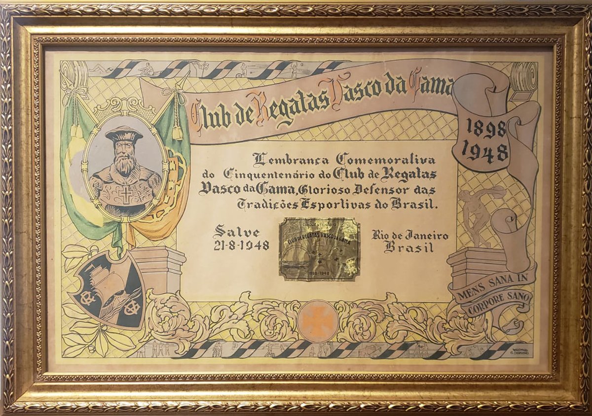 21/08/1948 - Cinquentenário do Club de Regatas Vasco da Gama - maior e mais rico clube do Brasil na época de seu aniversário! As relíquias vascaínas do cinquentenário são o medalhão em alto-relevo do nosso patrono, o diploma e o convite do cinquentenário.
