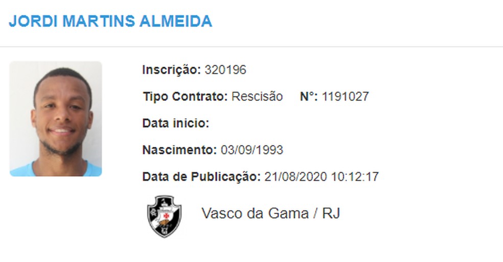 O goleiro Jordi, de 26 anos, está oficialmente fora do Vasco. Na manhã desta sexta-feira, a rescisão contratual com o clube que o revelou foi publicada no Boletim Informativo Diário (BID) da CBF. Com isso, está livre para assinar por dois anos com o português Paços de Ferreira.