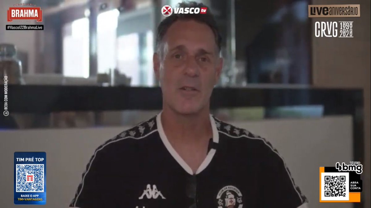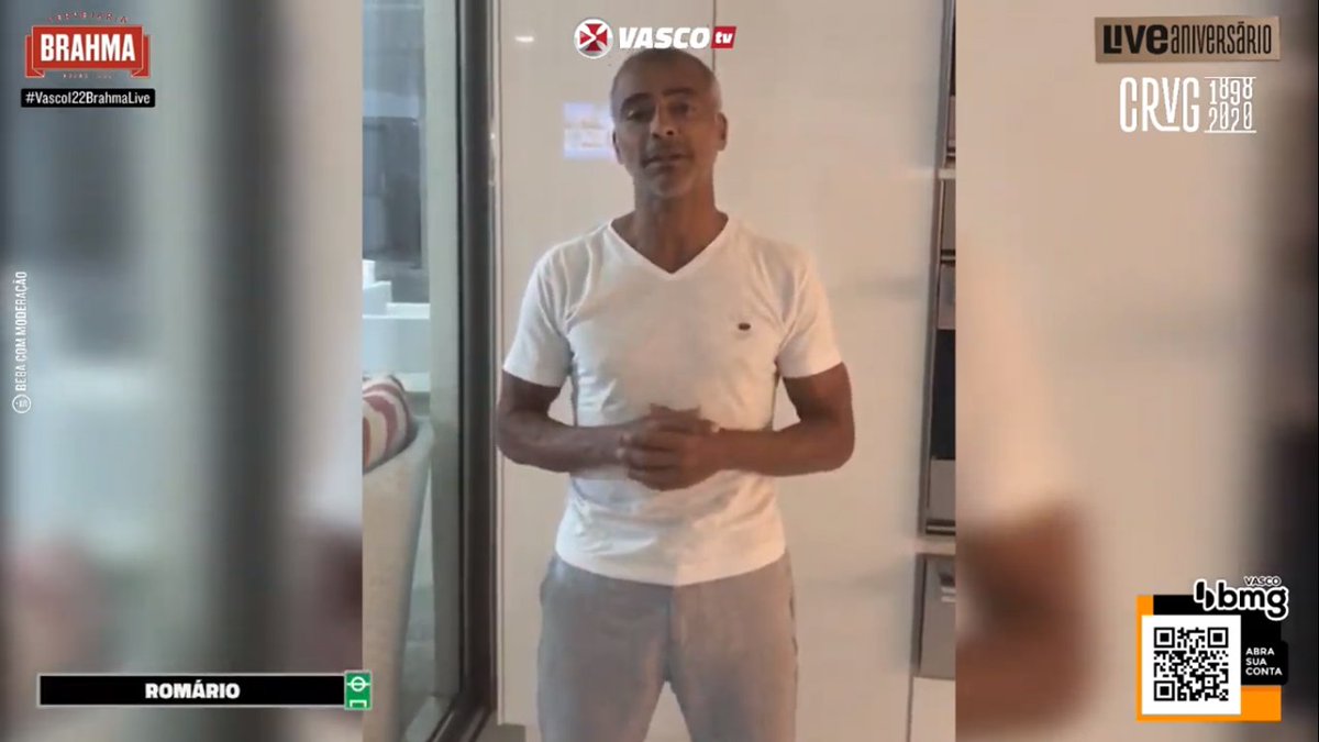 Romário na live da Vasco TV: "Primeiramente parabéns por 122 anos de muita luta, vitória e glória. E, porra, não poderia passar em branco aí, dizer que foi uma grande honra e prazer vestir a camisa desse time tão conhecido mundialmente e tão respeitado" #Vasco122ENM