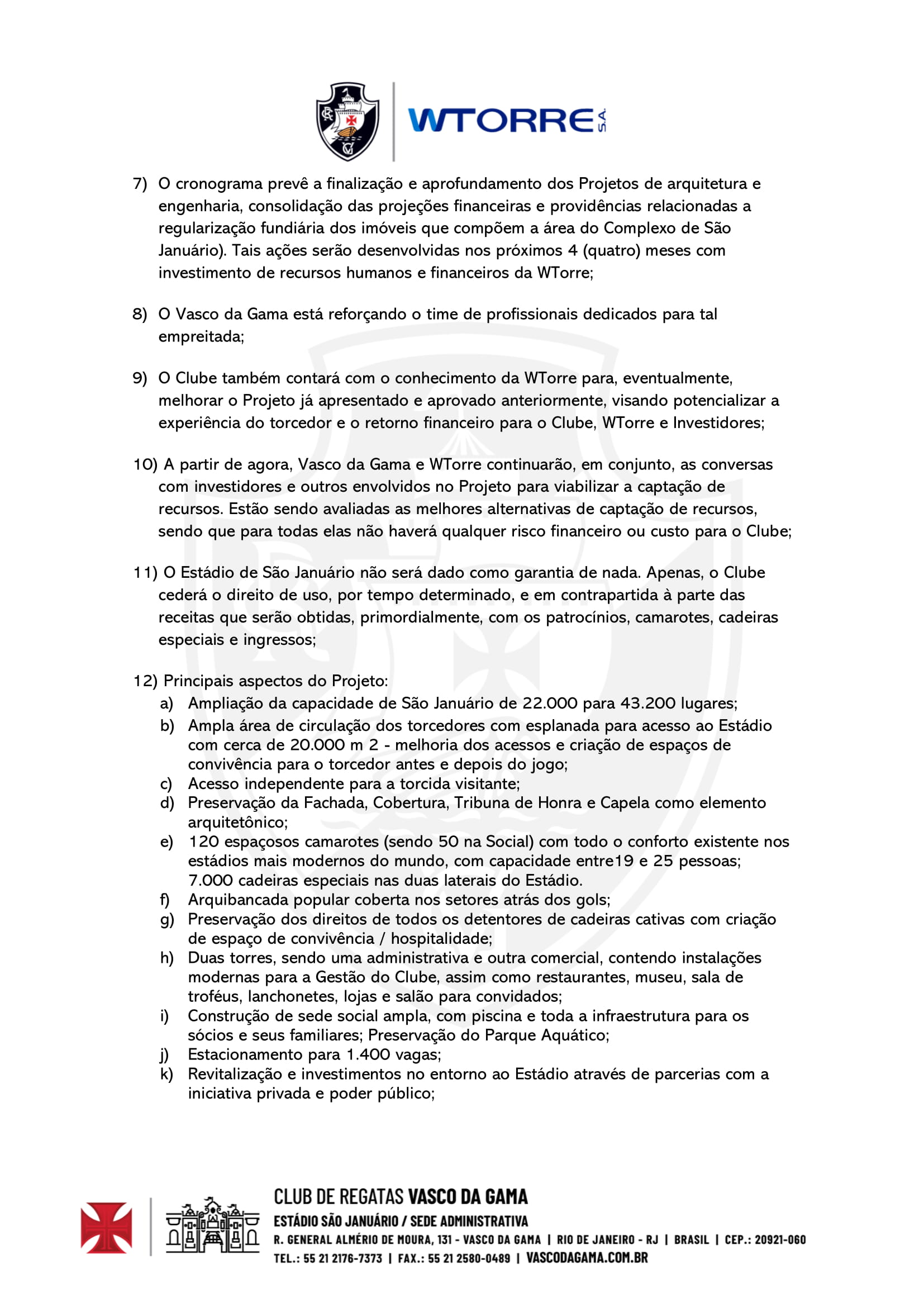 Presidente Alexandre Campello anuncia uma parceria com a empresa 'WTORRE' para a modernização do estádio de São Januário! #Vasco122