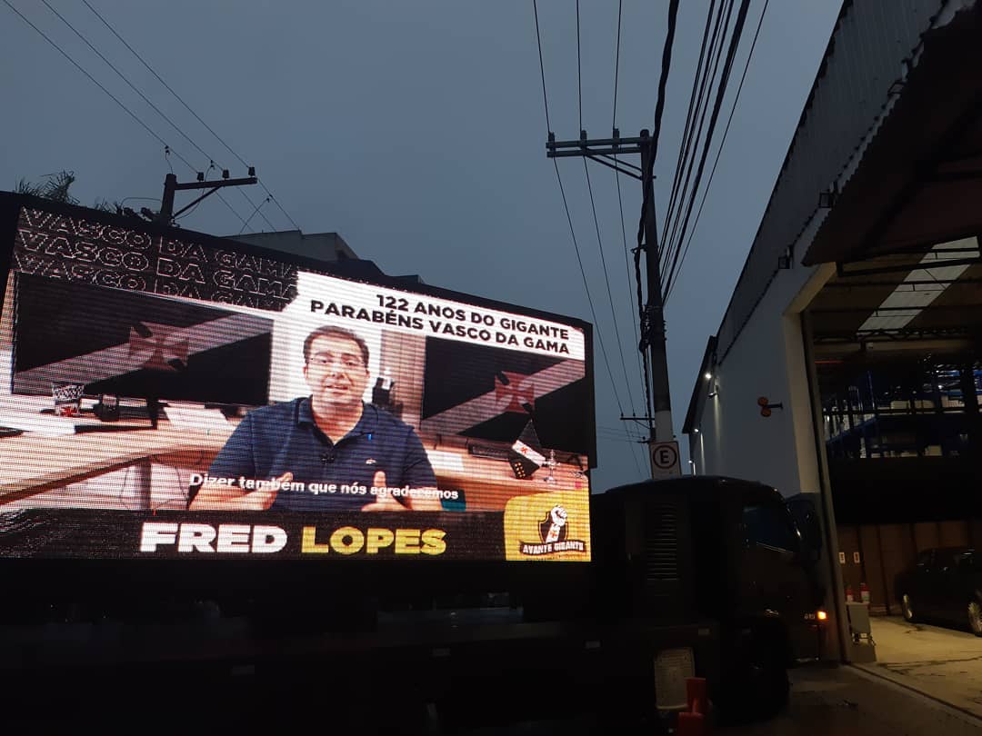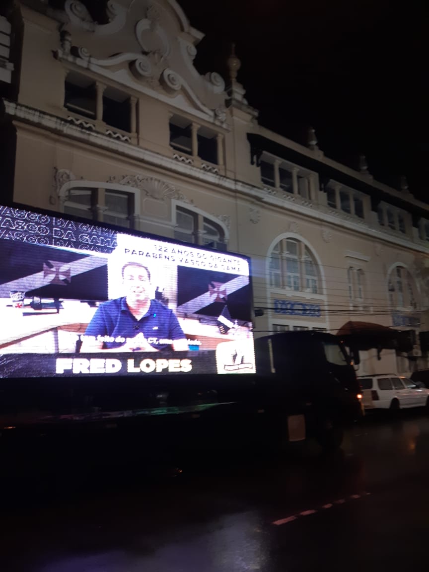 Caminhão de LED roda pelo Rio de Janeiro com mensagem de Fred Lopes no aniversário do Vasco