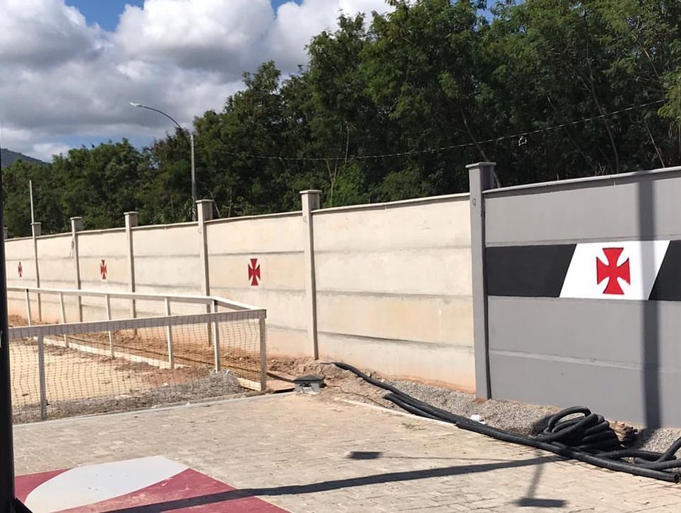 Vasco segue estruturando o CT para receber as atividades do elenco profissional. O muro está recebendo os retoques finais e está sendo concluída a instalação dos módulos e da CEDAE para ocorrer a plantação do gramado. Doe para o CT do Vasco!