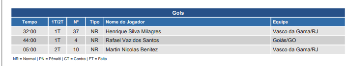 Confira a súmula de Goiás 1 (2) x (3) 2 Vasco, pela Copa do Brasil