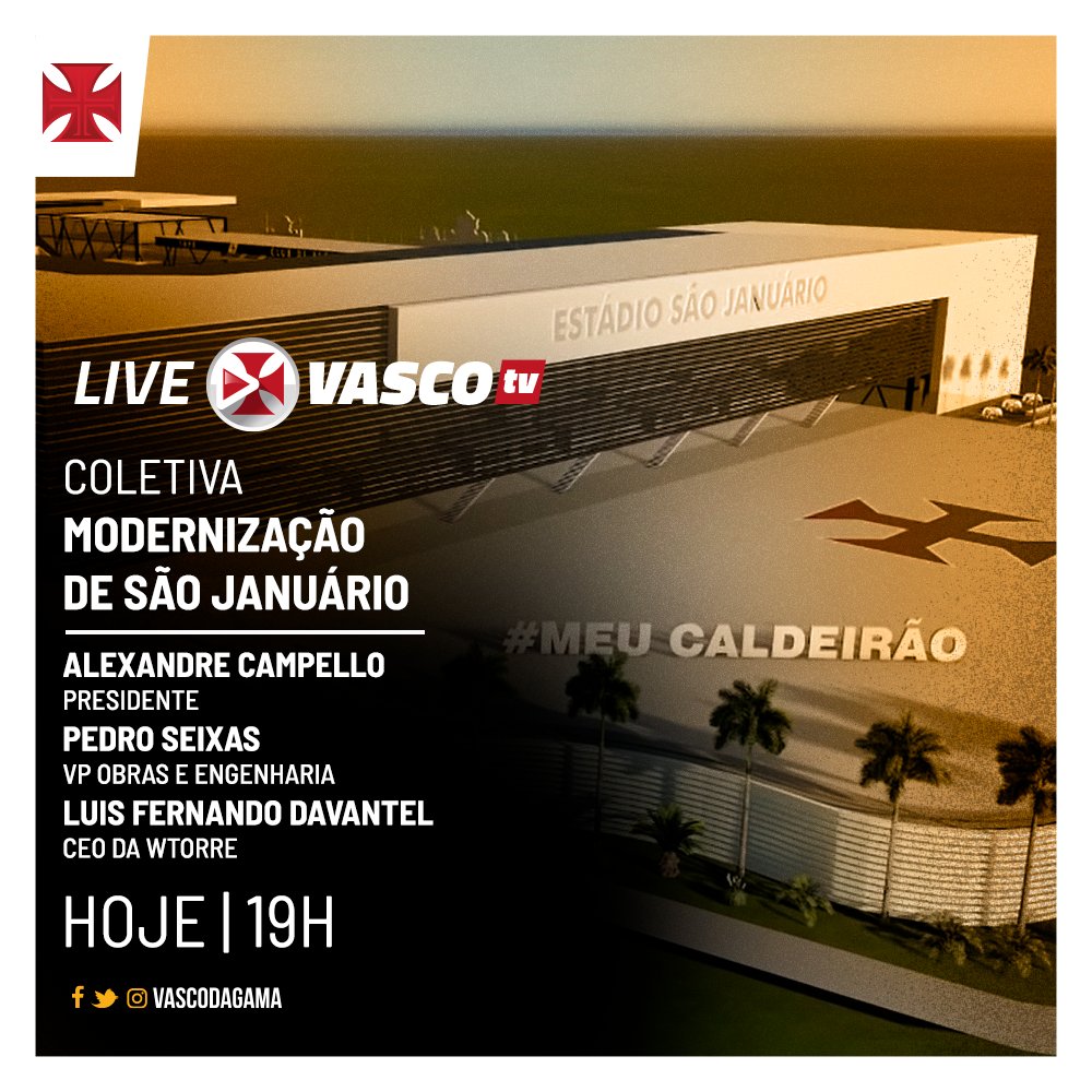 Live da VascoTV nesta 5ª terá Campello, Pedro Seixas e CEO da WTorre falando sobre modernização de São Januário