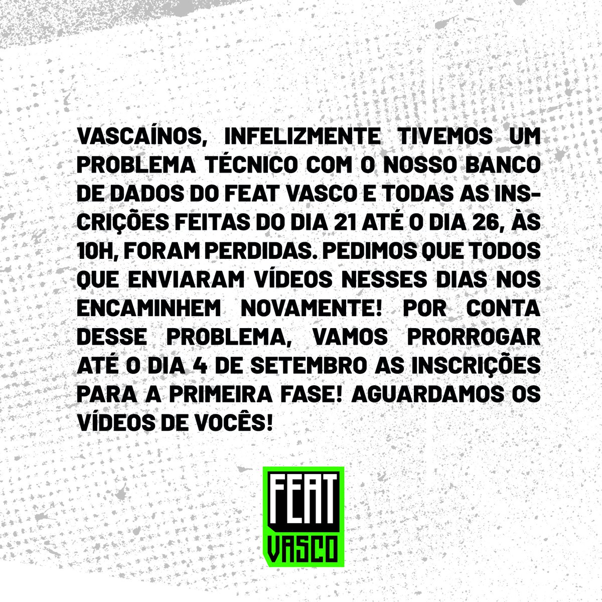 Vasco informa problema técnico no Feat Vasco e pede que participantes reenviem vídeos