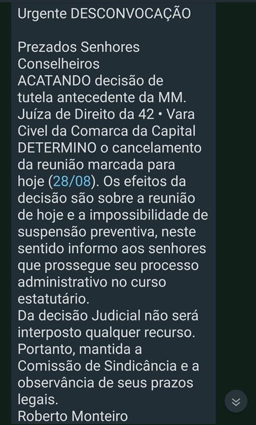 28/08/20 - Justiça nega recurso de Roberto Monteiro e mantém AGE somente com votação das diretas