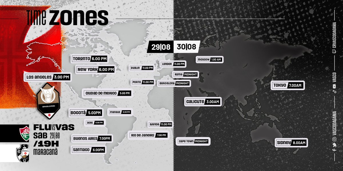 Vasco divulga horário do jogo contra o Fluminense para os torcedores espalhados pelo mundo