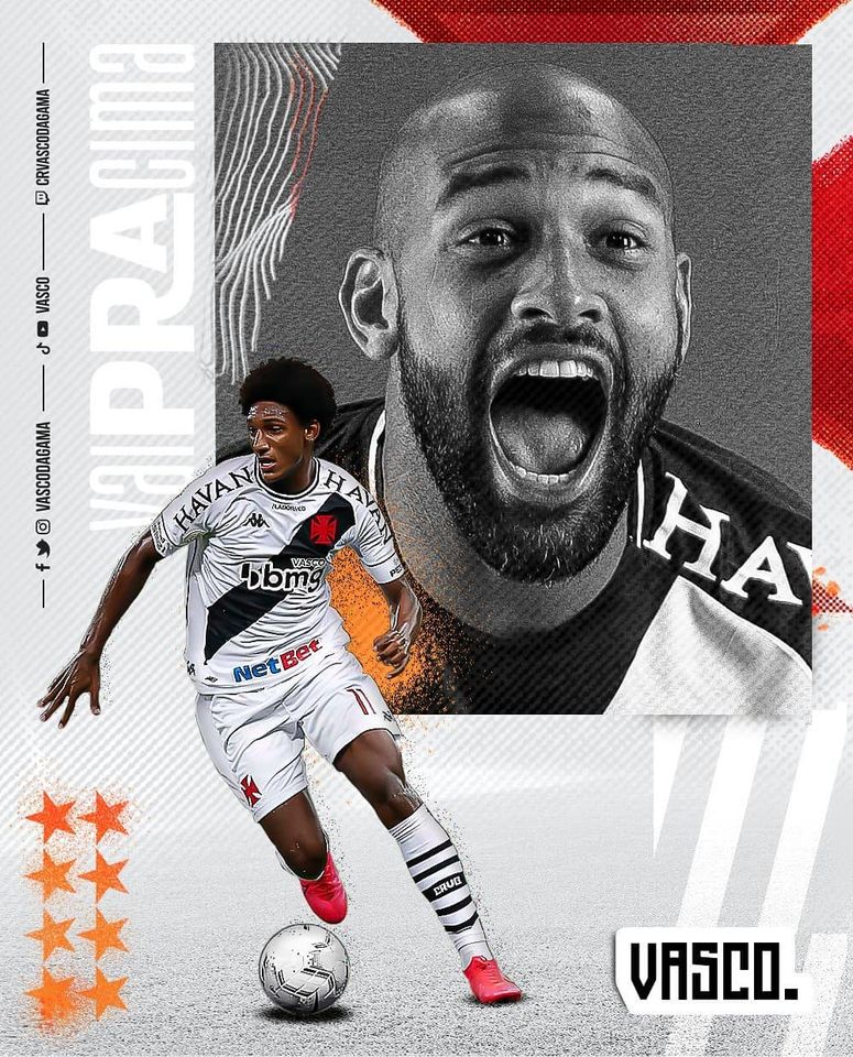 Vasco destaca Talles Magno e Fellipe Bastos em imagem de divulgação do jogo contra o Fluminense
