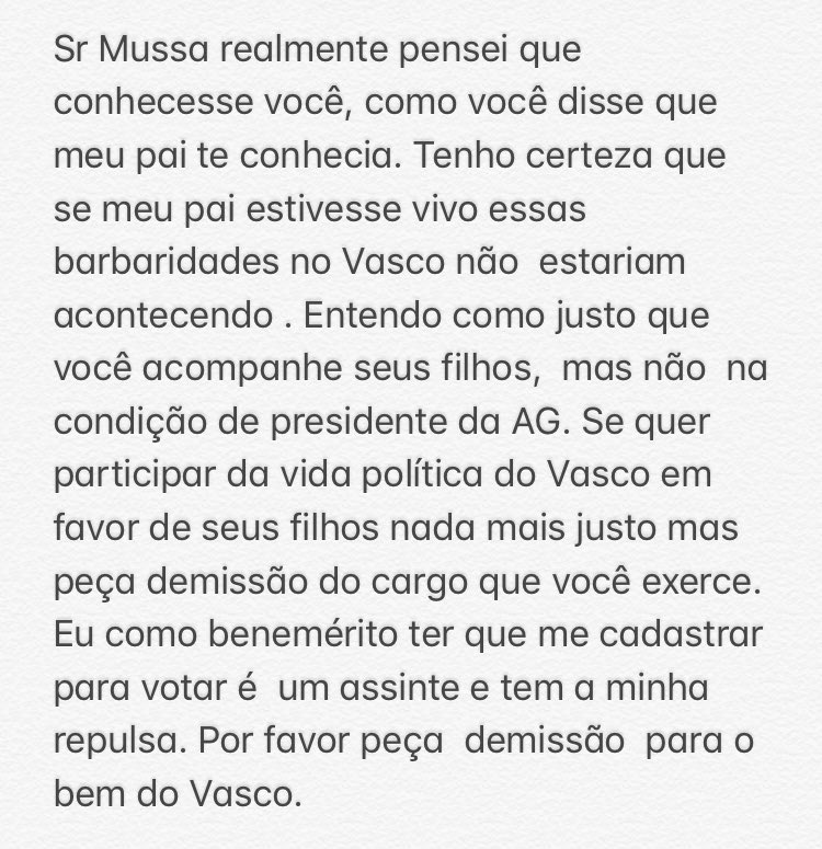 Na ocasião, sugeriu também que Mussa peça para sair: "Peça demissão do cargo que exerce".