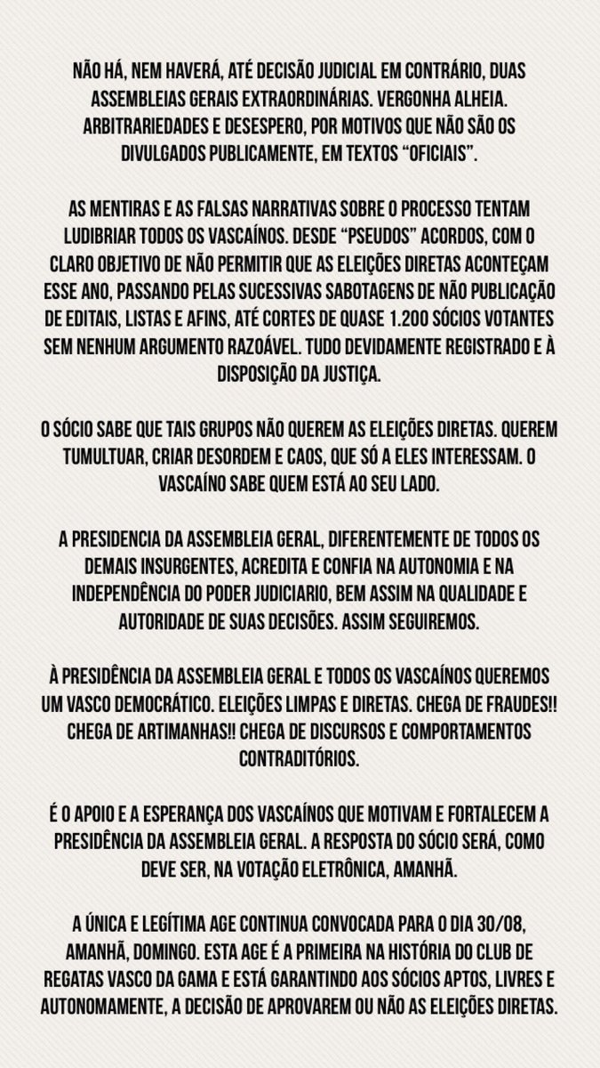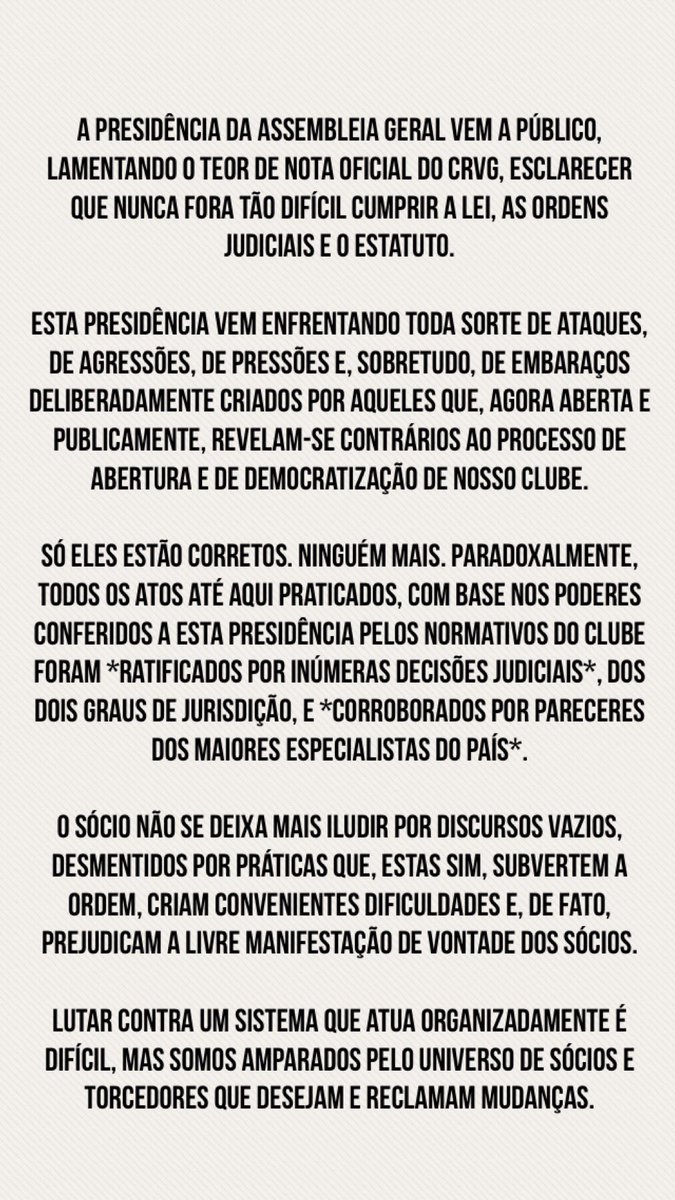 Mussa emite nota em resposta à Diretoria Administrativa do Vasco