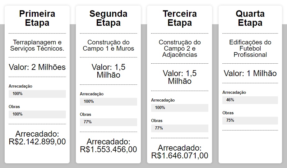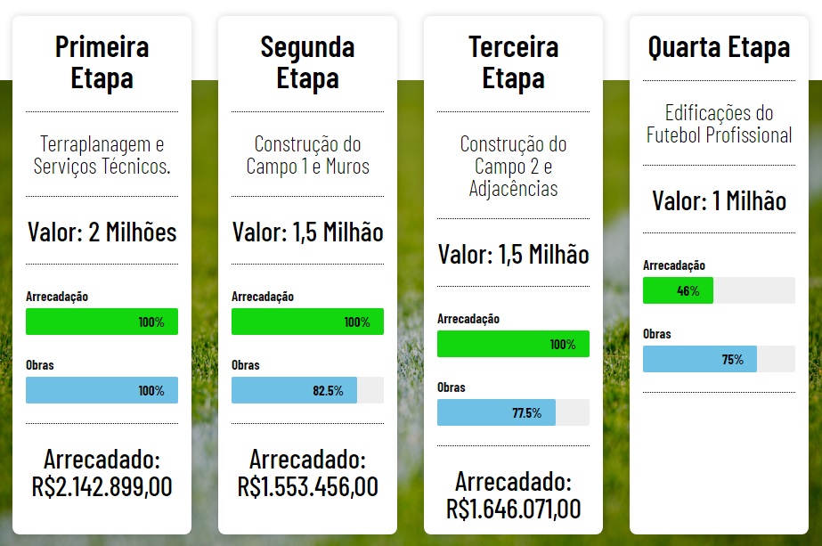 As obras da 3ª etapa (Construção do Campo 2 e Adjacências) passaram de 77% para 77,5%.