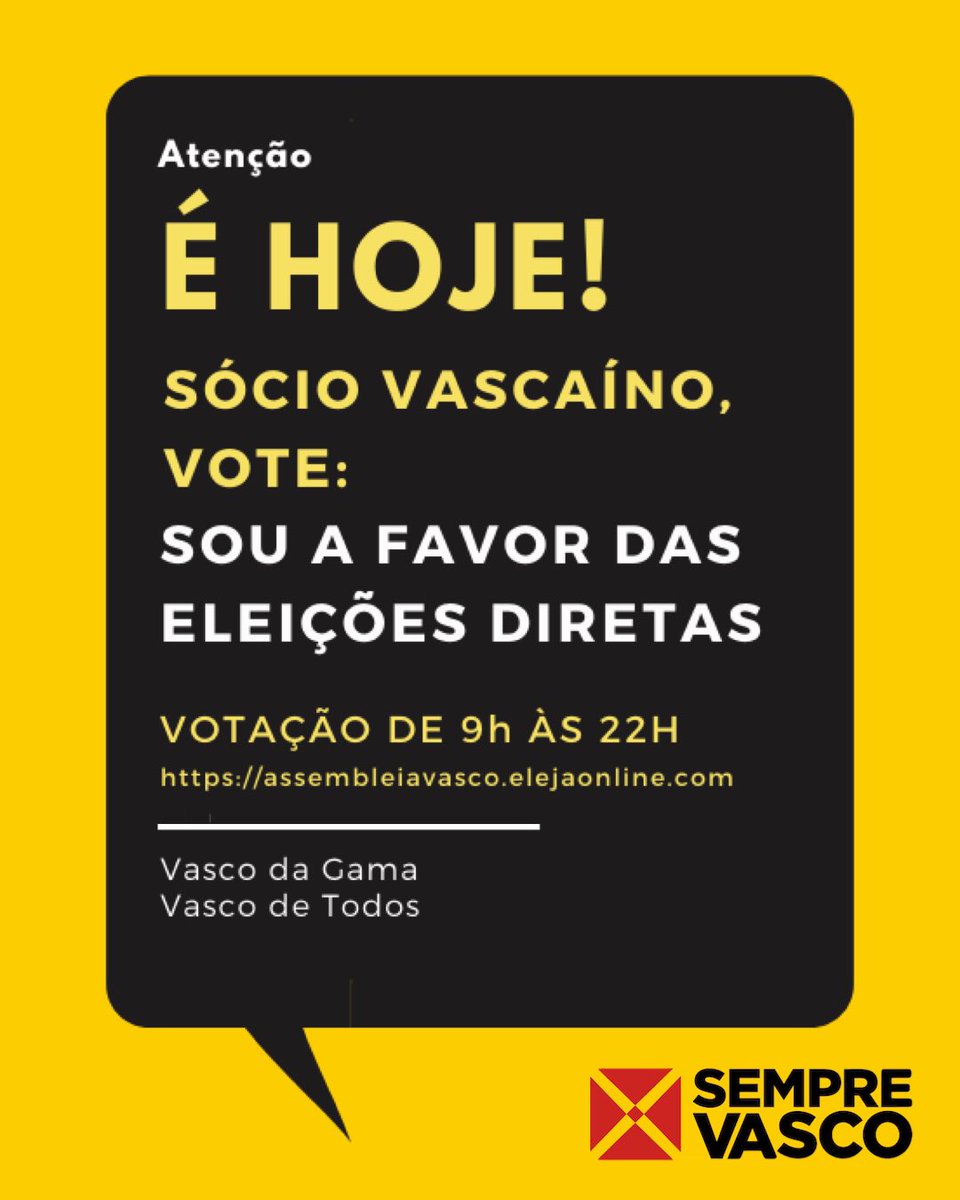 Sempre Vasco alerta para horário da votação da AGE e orienta apoiadores a votar pelas eleições diretas