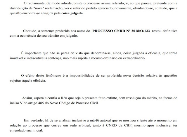 Antes, porém, em 4 de maio de 2018, o zagueiro ingressou com requerimento na CNRD. Pedia o mesmo. A dupla cobrança foi explicada por André Ribeiro, advogado do jogador: