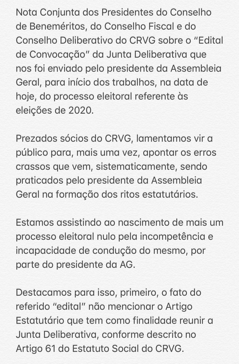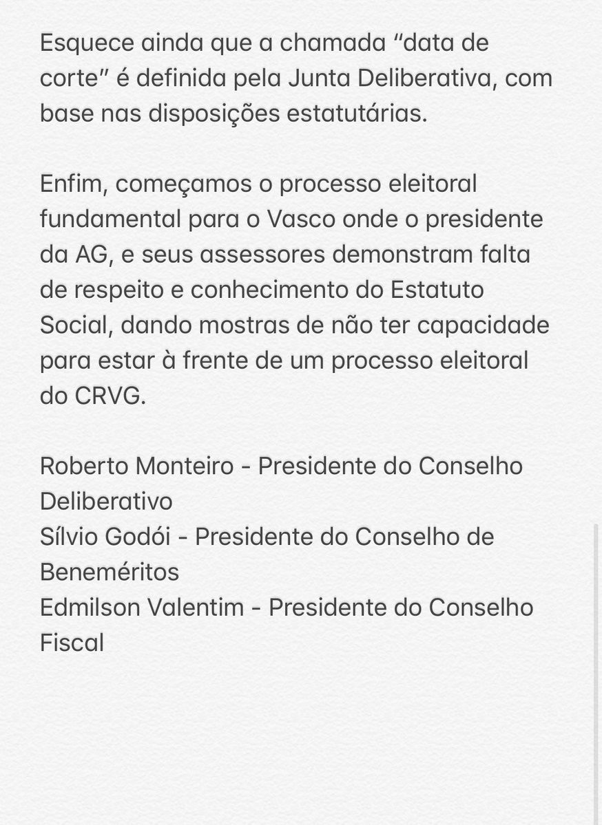 Presidentes do Deliberativo, do Fiscal e dos Beneméritos emitem nova nota conjunta. Desta vez em relação ao edital de convocação da Junta Deliberativa do Vasco: