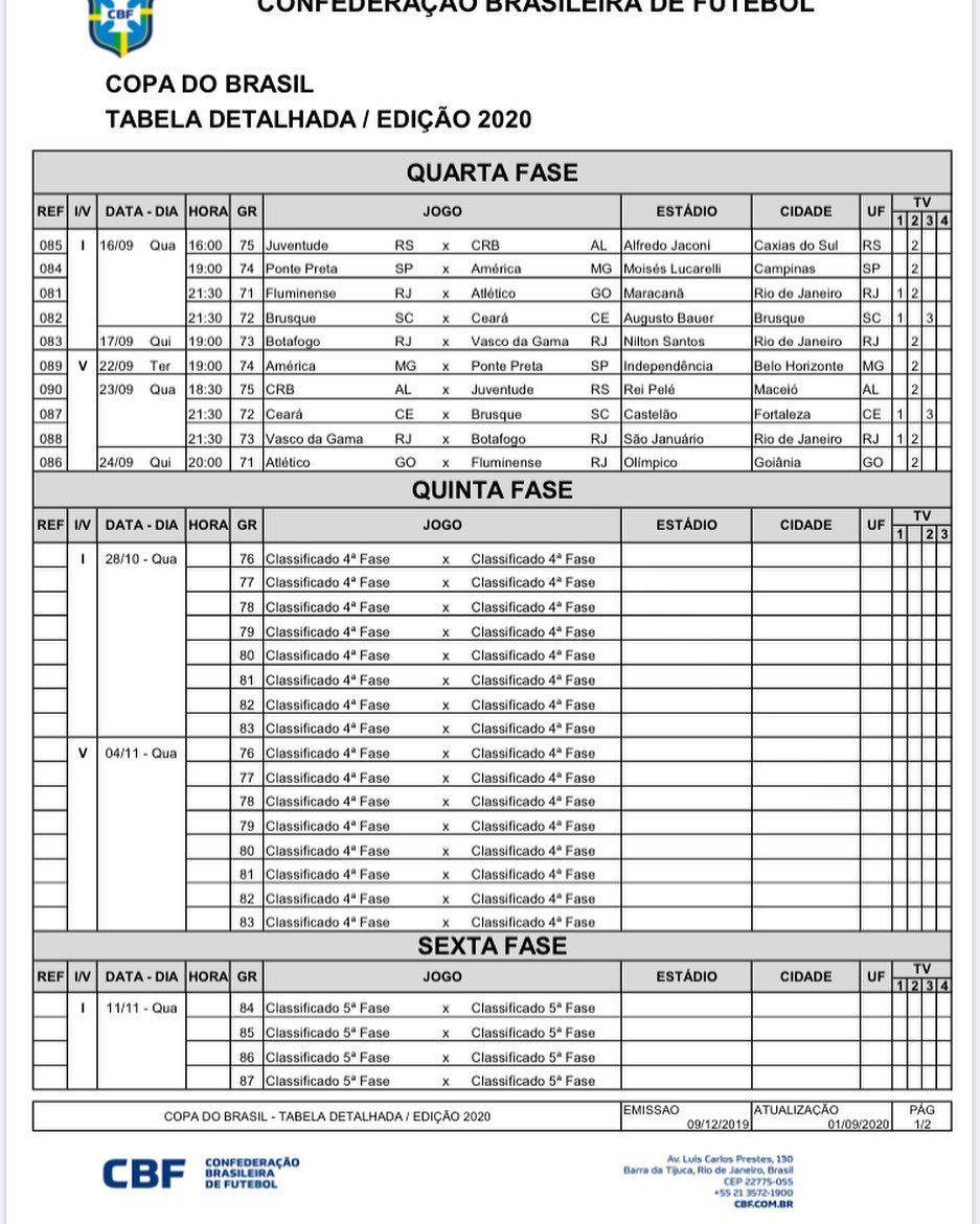 Tabela da Copa do Brasil 4ª fase. #itatiaia