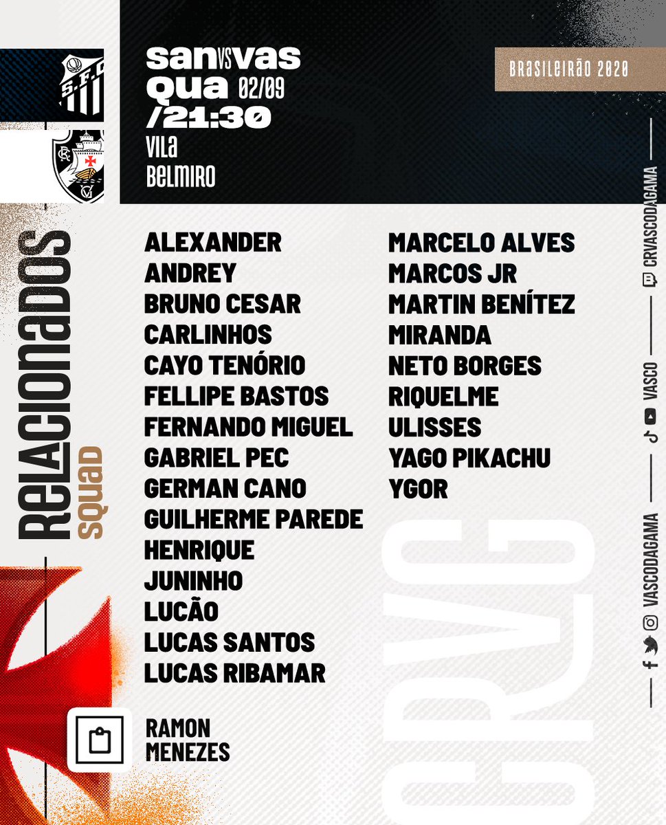 02/09/20 - Confira os desfalques e pendurados de Santos e Vasco