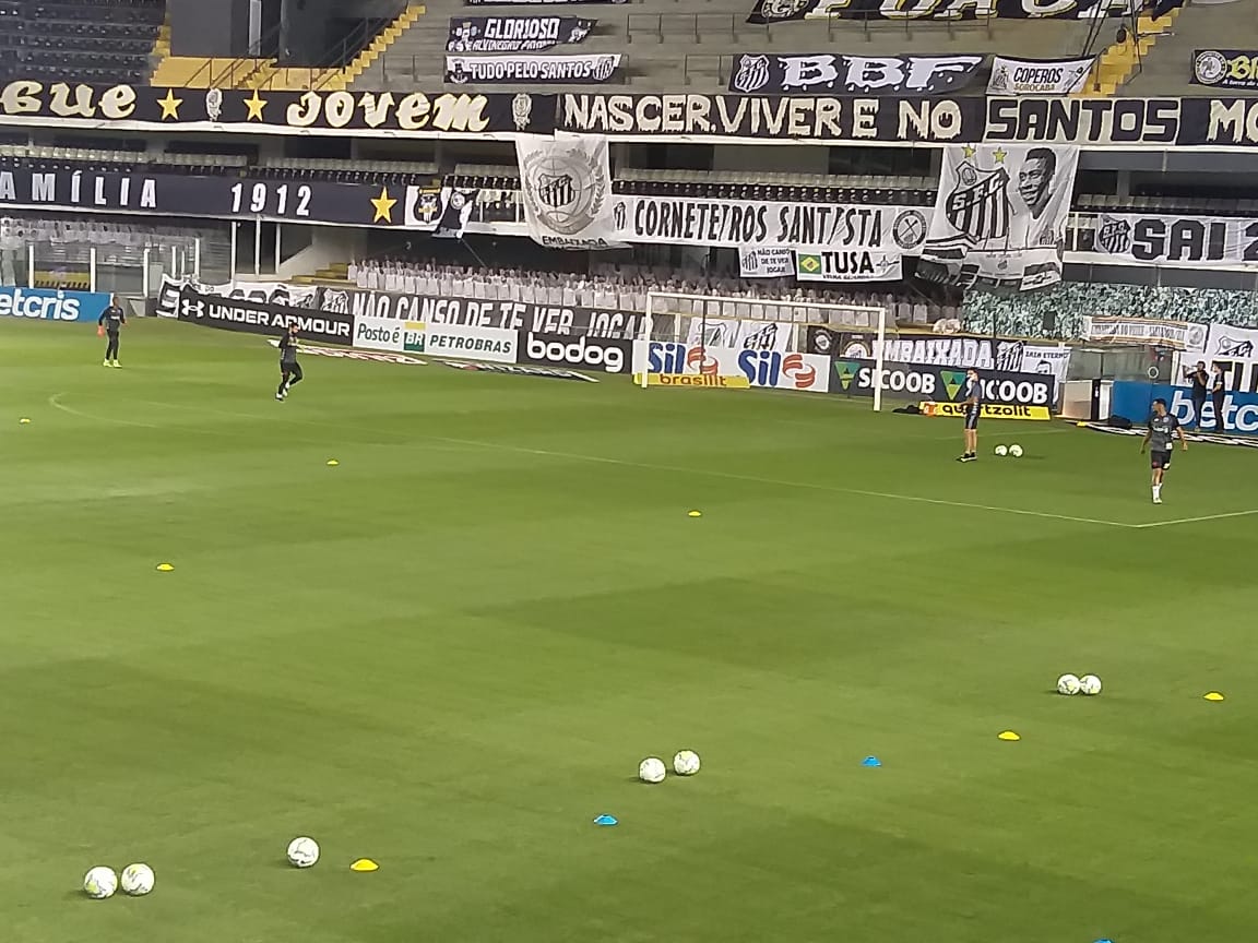 Goleiros do Vasco se aquecem na Vila Belmiro; veja foto