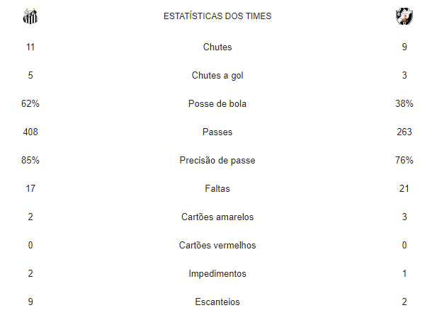 Cartões amarelos: SANTOS: Jobson e Diego Pituca. VASCO: Miranda, Guilherme Parede e Henrique