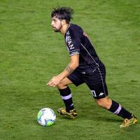 Defesa do Santos erra a saída e deixa Cano em boas condições. Centroavante do Vasco acerta o travessão do gol defendido por João Paulo.