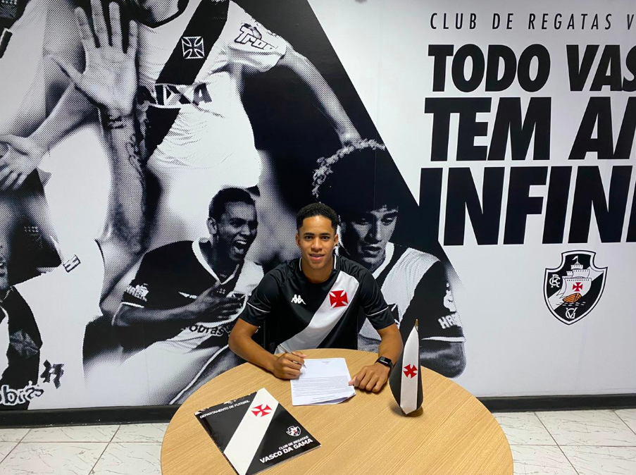 O garoto firmou vínculo com o Gigante até setembro de 2023, nesta quinta-feira (3/9), no prédio da Base, em São Januário.